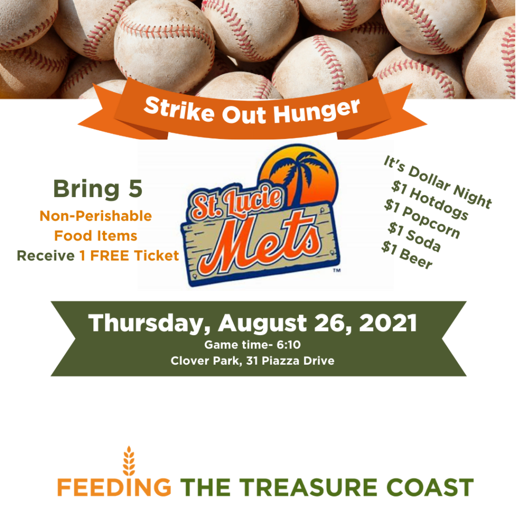 Join the Treasure Coast Food Bank as we partner with the St. Lucie Mets to “Strike Out Hunger.”